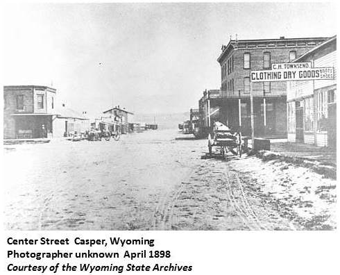 First building erected June, 1888, between First and A streets and between McKinley and Jefferson. Incorporated as a town July 2, 1889, named for the nearby old Fort Caspar site. Fort Caspar had been named for Lieutenant Caspar W. Collins, son of Col. Williams O. Collins for whom Fort Collins, Colorado was named. In July 1865, Lt. Collins was in charge of the Sweetwater station at Independence Rock, from which station he had gone over the Oregon Trail to Fort Laramie. On his return to headquarters he stopped at the Platte Bridge Station (Casper). Soon after his arrival he engaged in a fight, July 26, with the Sioux Indians when he met his death. On November 21, 1865, by orders of Major General Pope the name of the military post was changed from Platte Bridge Station to Fort Casper. (WPA) Named for the young lieutenant, Caspar Collins, who lost his life while gallantly attacking a superior force of Indians at a military post at Platte Bridge, later named Fort Casper. According to old timers the spelling became changed through a mistake in the post office department in Washington. Another theory, too, is that the people generally misspelled the name until the established spelling became "Casper" instead of "Caspar." (Annals of Wyoming 14:2) The town was established in the early summer of 1888, and was named after Fort Caspar, a military post first established in 1858. The site of Fort Caspar was called Camp Platte from 1840 to 1847. When the Mormons passed through here in June 1847, they built and operated a ferry across the river, and then the name was changed to Mormon Ferry or Mormon Crossing. Louis Guinard built a bridge across the river at this point in the winter of 1858-59, and the name was then changed to Platte Bridge Station. Lieutenant Caspar W. Collins was killed by Indians near the fort on July 26, 1865, and in October of that year Major General Pope ordered the name changed to Fort Caspar. When the town of Casper was platted by the land department of the Fremont, Elkhorn and Missouri Valley Railroad Company, the engineer, in the original plat, used an "e" in the last syllable instead of an "a." After many deeds for town lots and other important documents had been issued, all spelled with an "e," a request was made to have the spelling changed, but it was considered that the change would be too expensive. (Annals of Wyoming 15:1) County seat, Casper; was named from the United States post Fort Casper, which is located on the Platte River near this station. This post was named by the United States War Department for Capt. Casper W. Collins, who lost his life in a battle with Indians near this spot. Capt. Collins had but a handful of men while the attacking Indians numbered three thousand. Three only of the soldiers escaped, all the rest, with the captain, being killed. (Stennett, 1908)