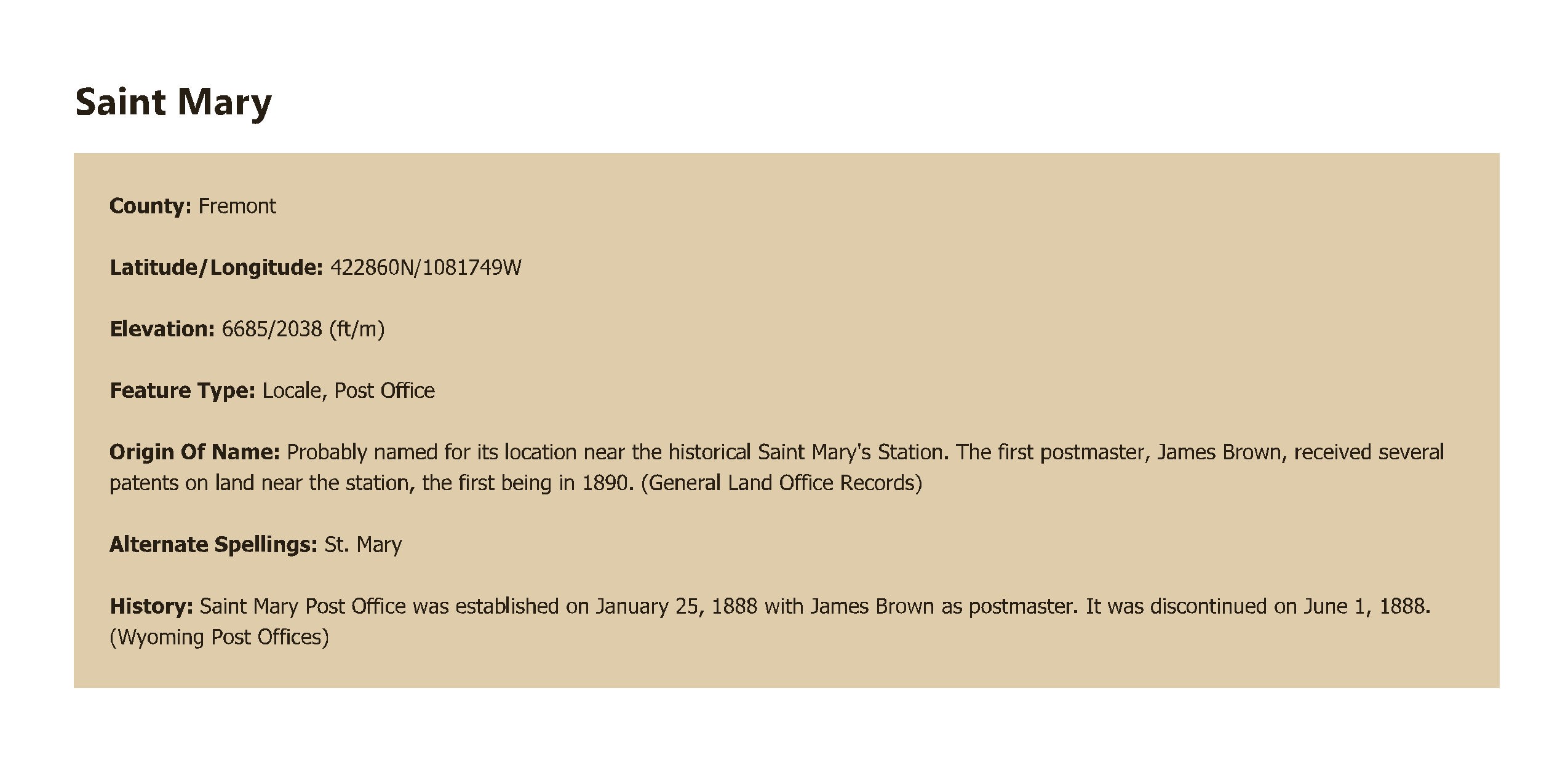 James Brown received several patents on land near the historical Saint Mary's Station, the first being in 1890. (General Land Office Records)