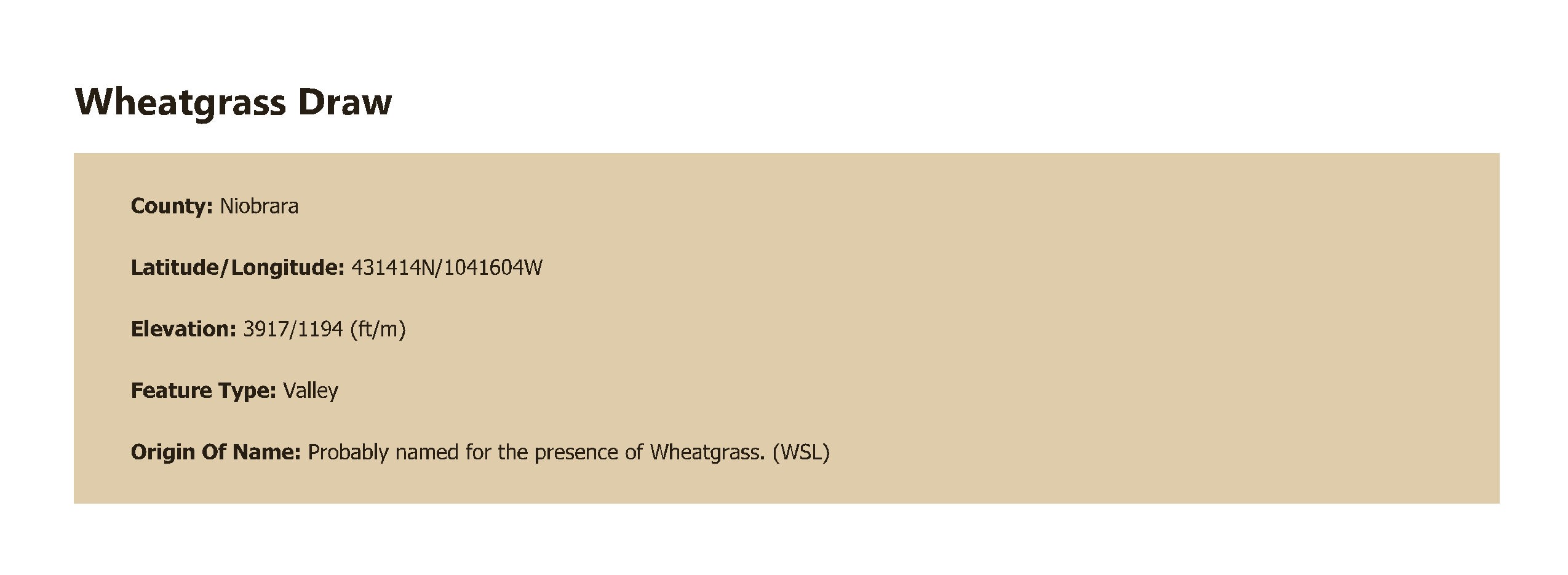 Probably named for the presence of Wheatgrass. (WSL)