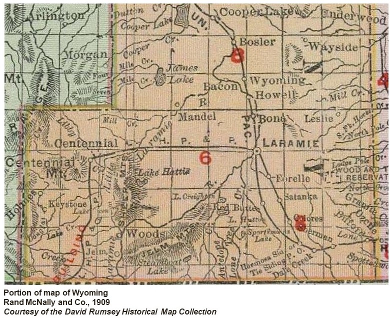 The Holmes Post Office was established in March, 1893. Its first postmaster was John E. Holmes. (Wyoming Post Offices)