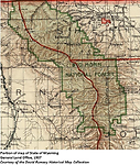 South of the Crow Indian Reservation and across the Big Horn Valley from the Shoshone National Forest lies the Bighorn National Forest, an area of more than one million acres extending eighty miles in a southeasterly direction from the Montana-Wyoming border along the Bighorn Mountains. This is a wild stretch of country where game abounds in natural haunts that have been the home of their ancestors for uncounted ages. This region was a famous hunting ground of the Sioux, Crow, and Cheyenne Indians before the coming of the white man, and was the scene of many bloody battles in early Indian campaigns. The area was named after the Indian word "ahsahta," the name given to the numerous mountain sheep that thrive in the region. (WPA)