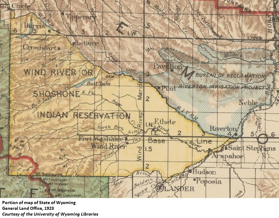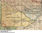 | Named for Crowheart Butte, an outstanding landmark 3 miles north of the post office on the north side of the Big Horn River. The town was named in July 1916 when the post office was established. Crowheart is a farm station of the United States Indian Service. It is on the Wind River Indian Reservation. (WPA) A postoffice near Crowheart Butte. Crowheart Butte was the site of a battle in 1857 between Shoshone warriors and Arapahoe, Gros Ventre and Cheyenne, whose despised the Shoshone for having made peace with the white invaders. Legend says that the Shoshone Chief once fought a duel on Crowheart Butte with a Crow Chieftain, that he killed the Crow, cut out his heart and ate it to augment his courage. Washakie did kill a Crow Chief in personal combatthere is no evidence, however, that he ate his enemy's heart. (Wyoming Guide) |
