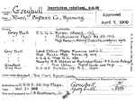 On a cliff overhanging the river near the town of Greybull in a pictograph is pictured a buffalo with an arrow through his body. With this picture goes the story that an old gray bull which ranged up and down the river chased by the Indians was finally killed by driving it over the edge of this bluff into the river below. Another story goes that an old gray buffalo bull hung along this river for years and that every buffalo hunter in the country tried to kill him without success and that these hunters referred to the river as the Greybull. (WPA) The town Greybull is named after the Greybull River which, legend relates, was named for a strangely colored gray buffalo bull that ranged up and down the river in defiance of hunters who sought to kill him. Indian pictographs on a cliff overhanging the river represent a buffalo bull with an arrow through his body. (Annals of Wyoming 14:3)
