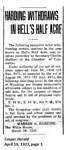 | This geological freak of land, consisting of about 300 acres, was formerly and appropriately known as "The Devils Kitchen." It is about 50 miles west from the city of Casper, and attracts many tourists. In this weird depression there are deep caverns, crevices, pits, towers, spires, buttresses, and other architectural features, which suggest the ruins of man's creation, rather than the wearing away of the formation of the earth. Here and there, standing alone, are quaint forms carved by wind and weather out of the volcanic matter, and then there are a number of places the effect of which is that of the pyramids of Egypt, dropped down into this un-Egyptian landscape. Many fossils of the prehistoric age have been found in this area. During the summer of 1907 a professor from the University of Wyoming unearthed a skull of a Titanotherium (Thunder Beast), an animal which is very similar to a rhinoceros. This beast roamed the plains over 30 to 60 million years ago. (WPA) |