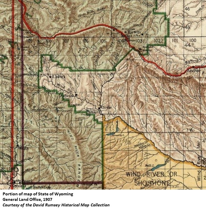 | Possibly named for the brand of the Wind River Live Stock Company. (WSL) Circle was the location of the Wind River Live Stock Company, of which John Landis, the first postmaster, was part owner. One of the brands of the company was a circle. (Brands, 1913) |