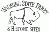 | Wyoming State Parks and Historic Sites logo. Text = Wyoming State Parks & Historic Sites. Bison facing east with outline of bison. |