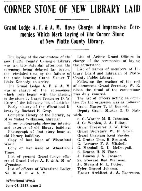 | "County Library Now at Home in its Beautiful New Building" Wheatland Times, December 17, 1917, page 1.; Wilkinson, Mabel. "Establishing Libraries under difficulties" Bulletin of the American Library Association Vol. 10, No. 4, PAPERS AND PROCEEDINGS OF THE THIRTY-EIGHTH ANNUAL MEETING OF THE AMERICAN LIBRARY ASSOCIATION (July, 1916), pp. 161-169. |