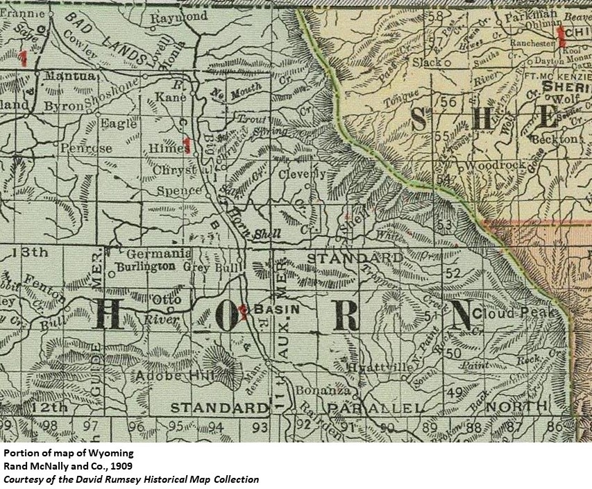 Named after Charles Raymond who established a ranch post office in this vicinity. (WPA) Raymond Post Office was established in April, 1907. The first postmaster was Charles W. Raymond. (Wyoming Post Offices)