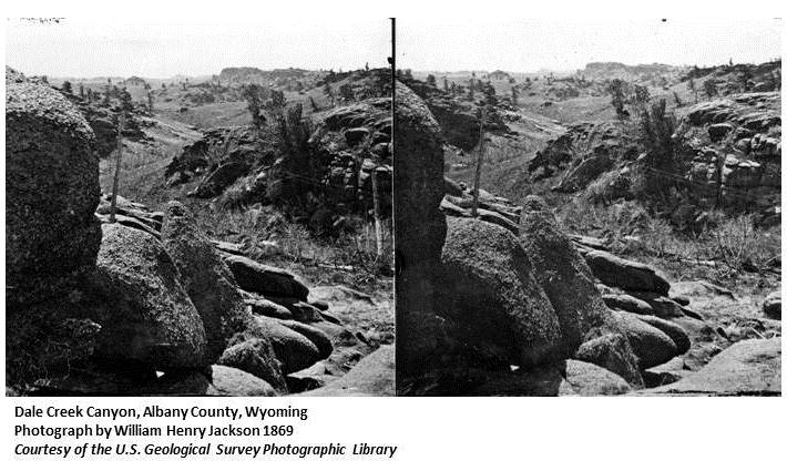 | ...two and one-half miles west of Sherman we pass over Dale Creek Bridge, the most noted bridge on the line, it being 138 feet high and 840 feet long, beneath which is Dale Creek, swarming with mountain trout, the finest fish for eating there is anywhere to be found. (Brown's Gazetteer) |