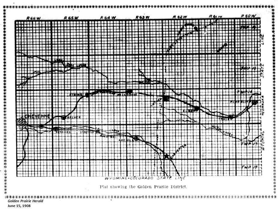 | In southeastern Wyoming, which is the southeastern corner of Laramie County, lies a tract of land which has been well named, "The Golden Prairie District." so named because of the vast number of yellow flowers. The hills and valleys look like gold when these flowers are in full bloom. In no other part of the State are these flowers found. The ground in this district is covered with a carpet of short, stiff, and curly grass, called buffalo grass, which is very nutritious. (Mrs. Minnie Fenwick, Burns, Wyoming in Herald of Gospel Liberty, General Convention of the Christian Church, 1912) |