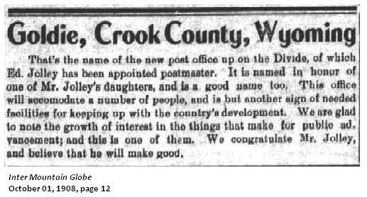 Named in honor of one of the postmaster's daughters. (Inter Mountain Globe October 01, 1908, page 12)