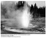 | Geyser, Yellowstone National Park, Wyo., the principal geyser of Heart Lake Geyser Basin, a half mile northwest of Heart Lake. ... So named because of a surrounding cordon of logs probably placed by early trappers, now beautifully coated with a heavy deposit of geyserite. (Decisions, 1930) |
