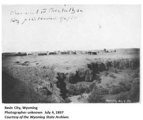 Called Basin City because it lies in the Big Horn Basin and is the oldest city in the Basin country. In 1897, Basin was a town of some dozen residents living in dugouts and tents. (WPA) Located in the heart of the Big Horn Basin from which it derives its name. (Annals of Wyoming 14:2)