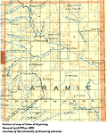 | Named by a Mr. Curtis of Torrington, for the town of Torrington, England. Curtis was one of the early settlers in the area. (WPA) This town received its name from Torrington, Conn., and Torrington, Conn., received its name from Torrington, England. William Curtis came from Torrington, Conn., to Colorado where he worked on the farm of John Coy. These two men traveled horseback down the Laramie River and the North Platte where they decided to homestead. This was in 1883 and they soon applied for a post office in the name of "Torrington" which was granted. (Christiansen) |