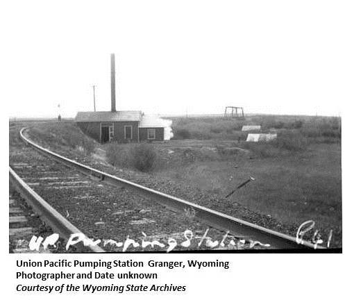 | On July 6, 1847, Brigham Young and party camped on the present site of the town while on their way to Salt Lake. The Pony Express, old Oregon Trail, and Overland Stage routes wound their way through this district. The old Granger Stage and Pony Express station is still intact. It is now a railroad junction. In early days it was called "South Bend" because of the bend in the Ham's Fork River. May have been named for the stepfather of William Crookston. The spring nearby was originally called Granger Spring, from which the town takes its name. (WPA) Granger Post Office was established in February, 1869 with Lafayette Granger as its first postmaster. (Wyoming Post Offices) |