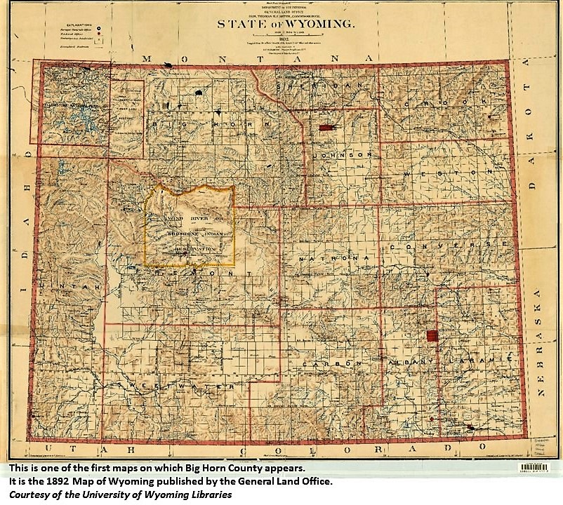 Big Horn County, Wyoming : facts and maps through time. Blevins, Bruce H. Powell, Wyo. : WIM Marketing, c2000.; Big Horn County, Wyoming : the gem of the Rockies. Mercer, A. S. (Asa Shinn) Hyattville, Wyo. : A.S. Mercer, c1906.; Rebecca Hein. "Big Horn County, Wyoming. Wyohistory.org.