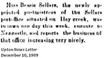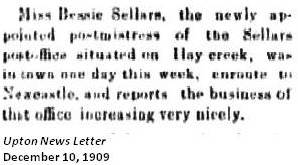 Cellers Post Office was established in October, 1909 with Bessie G. Cellers as its first postmaster. (Wyoming Post Offices)