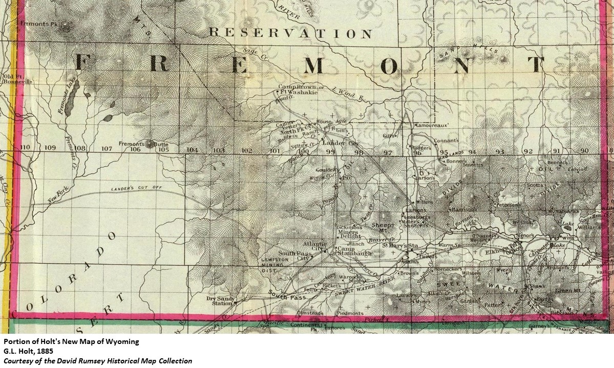 Camp Stambaugh was located 2 1/2 miles from Atlantic City WY and was named for 1st Lt. Charles B. Stambaugh, 2nd U.S. Cavalry who was killed in action near Miner’s Delight WY on May 4, 1870.