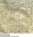 | Named for the Arapahoe Indian tribe. Arapahoe was established by the Indian Service in 1880 as a sub-agency for the Arapahoe tribe, who was placed on the eastern part of the Shoshone Reservation between the Big Wind and Popo Agie rivers in 1879. John C. Burnett operated a trading store there, which, at one time was the largest retail store in Fremont County. (WPA) The town was platted by the Pioneer Town Site Company and was named from a nearby Arapahoe Indian reservation. The name is that of a noted Indian tribe and signifies "traders." (Stennett) A trading post and Arapahoe Indian sub-agency. (Annals of Wyoming 14:2) |
