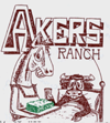 Description of Mark:The words "Akers Ranch" above an image of a horse serving hay to a steer in bed.