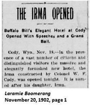 The Irma Hotel was built by William "Buffalo Bill" Cody in 1902 in Cody, Wyoming. It was named for his daughter, Irma. (Laramie Boomerang no. 208 November 20, 1902)