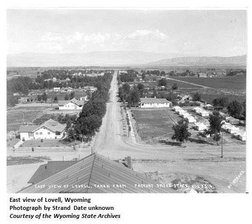 | Between 1880 and 1883, in the eastern part of the Big Horn Basin, Henry T. Lovell, a native of Kansas, was placing his herds on the west side of the Big Horn River, starting his ranch a few miles above the mouth of Nowood. This became known as the Lovell Home Ranch. Two years later he trailed in three more herds from Oregon. This increased his herd to around 25,000 head. The year previous to this he had established a second ranch on Shell Creek. In 1883 he selected a third ranch site at Five Springs, on the Big Horn River opposite of the town site of Kane. This ranch became known as the M L. The M L was the largest cattle ranch in the eastern part of the Big Horn Basin. The town was eventually named Lovell in honor of Henry T. Lovell. (WPA) Founded by the Mormon colonists who came into the region in 1900 and was named for a big-scale rancher by the name of Lovell who had preceded the Mormons. (Annals of Wyoming 14:3) |