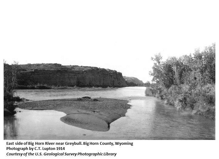 The name comes from an Indian word "ahsahta" meaning horned sheep. They were found in large numbers among the rocks and precipices of the area. (WPA) River, tributary to the Yellowstone River, so named from the Rocky Mountain sheep, frequently called "big horn." Its Indian (Dakota) name was papatunkau, meaning "big head." (Gannett, 1905)