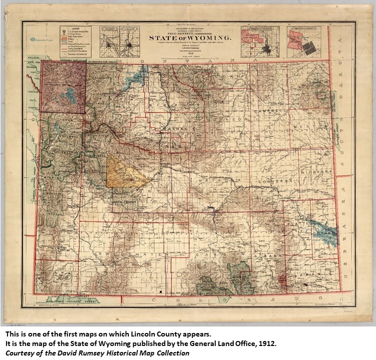 Named in honor of Abraham Lincoln, sixteenth president of the United States. It is one of the largest counties in Wyoming, extending along almost half of the western boundary of the state. Created in 1911. The county seat is in Kemmerer. (WPA)