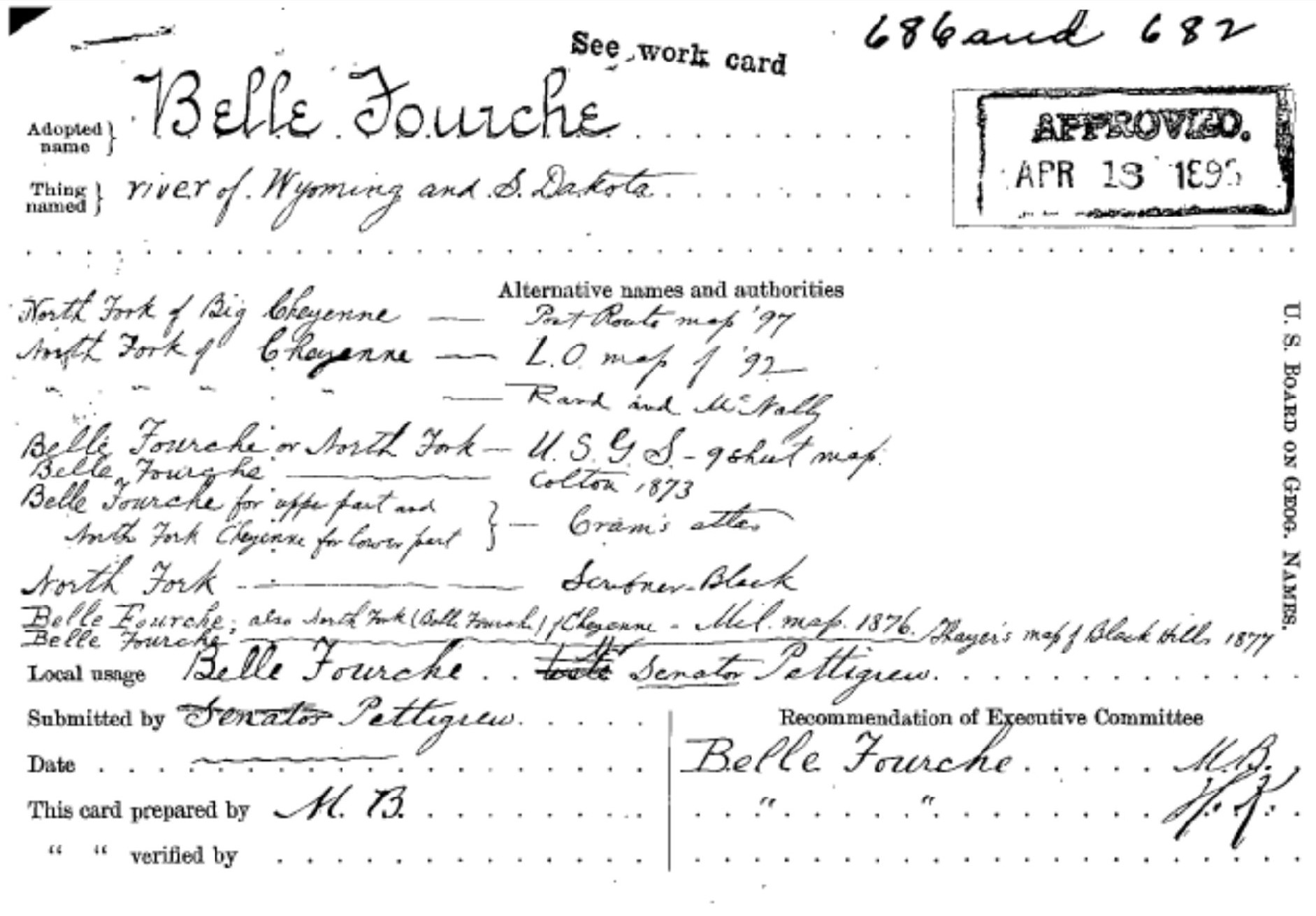 River, Wyoming and South Dakota officially recognized as the Belle Fourche River by the U.S. Board on Geographic Names in 1893. (Decisions, Geographic Names, 1890-1932)