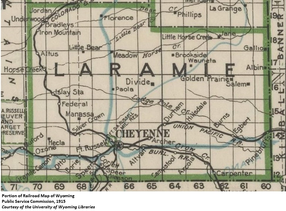 Named because of its location on Horse Creek. (Annals of Wyoming 14:3)
