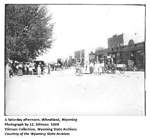 The country surrounding the town is well adapted to the growing of wheat. The vicinity was once known as the Wheatland Flats, 50,000 acres of irrigated land in the Laramie valley. (WPA)