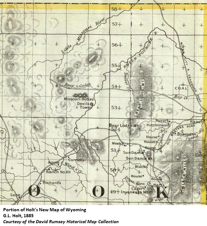 The name is Sioux Indian, for the appearance of the hills from a distance is black from the pine. They are called "Paha Sapa" or "Mess Sapa." Paha is hills, mess is mountain, Sapa is black, therefore Black Hills or Black Mountains. (WPA) Mountain range in South Dakota (Wyoming), called by the early French traders cote noire, "black hills," from the character of the timber which grows on them, giving a dark appearance. (Gannett, 1905)