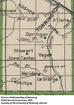 Stewart Post Office was established on December 22, 1911 with L. M. Stewart as its postmaster. (Wyoming Post Offices) Louis N. (M.?) Stewart received a patent on land at this location on March 10, 1915. (General Land Office Records)