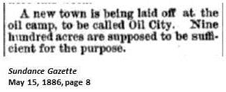 Probably located near the "Belle Fourche Oil Field" that was about 15 miles northeast of Moorcroft. (Knight, 1899)