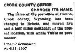 Located on Wild Horse Creek. Named by a Mr. Wilson, early settler, who saw a wild horse along the creek. It is the Indian word for wild horse. (Christiansen)